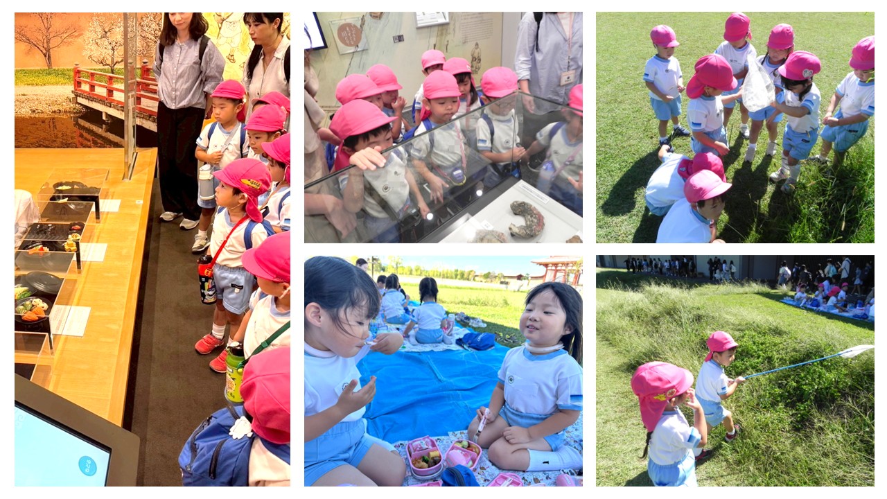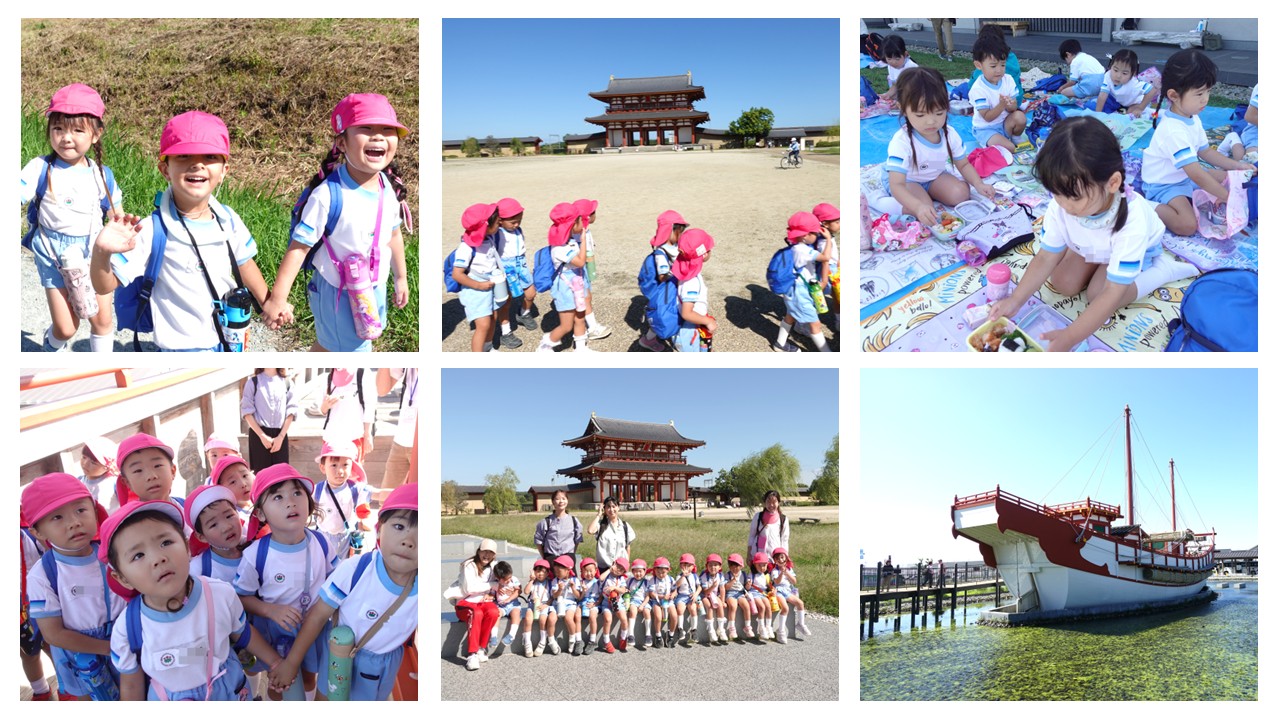 年少児が平城宮跡へ秋の遠足に出掛けました。歴史資料館では昔のご飯や遺跡などに興味を示し、大きな