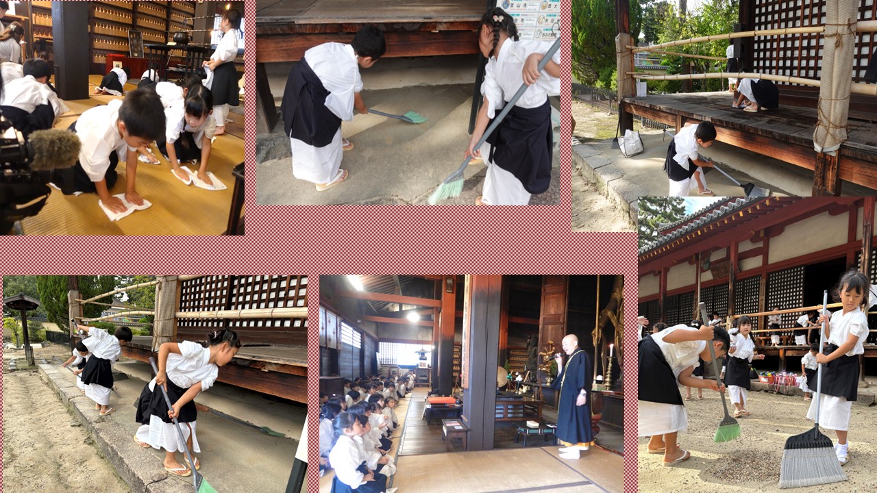 総本山西大寺 宗務長様のお話しに、じっと耳を傾けた子ども達。心を磨き、仏様のみおやの元で自分自身に