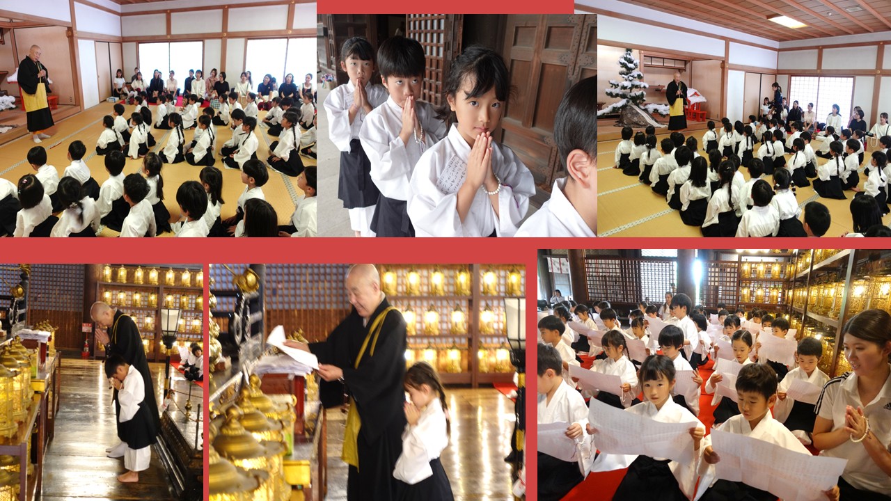真夏の暑さも和らいだ秋口に、幼稚園と保育園の年長児(希望者)合同の小坊さん修行を行いました。