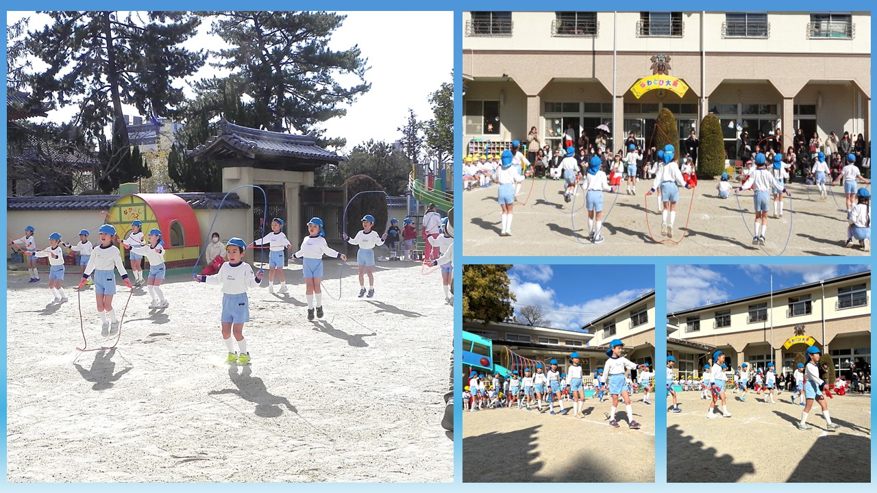 年長組が縄跳び大会を行いました。様々な技能に挑戦しました。当日はたくさんのお客さんに見て