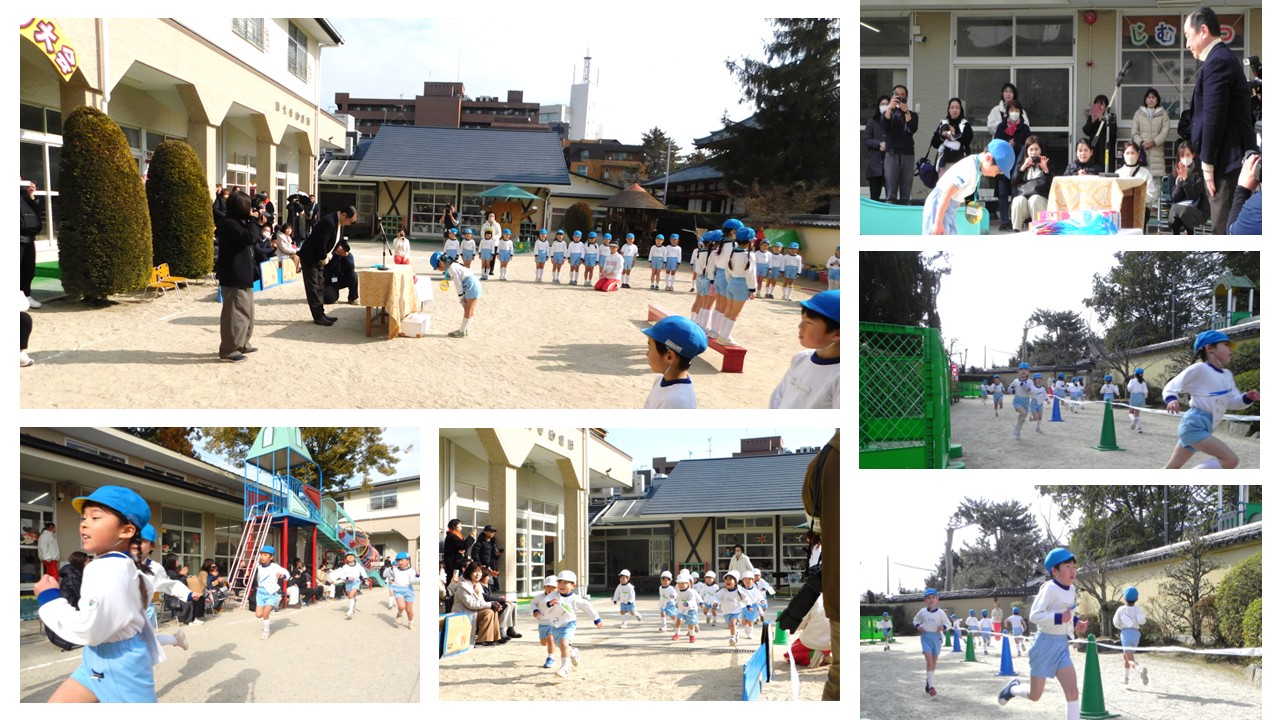 お姉さんに負けずに、年長児さんも見事なフォームで走り切りました。最後に年長児さんは
