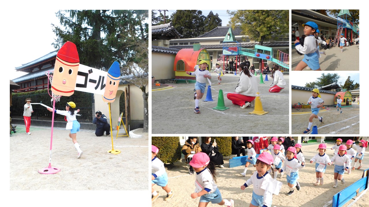 「さむさなんか負けるものか。」天候にも恵まれ、全園児でマラソン大会を行いました。2歳児は約400m